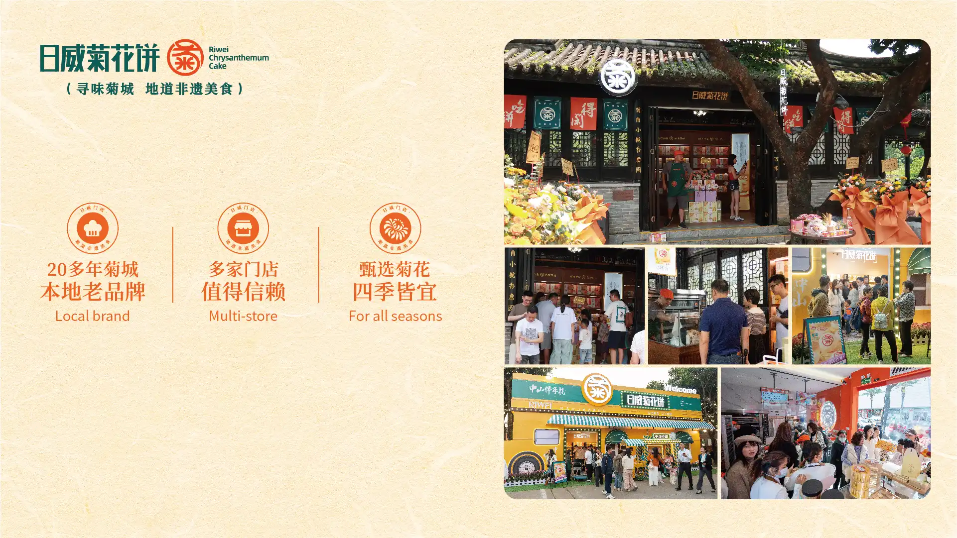 菊花饼系列入选中山市特色旅游商品推荐目录;获得全国老字号“城市礼物” 推荐产品荣誉。日威菊花饼承载着地方文化与历史记忆,成为中山递给世界的美食名片。
